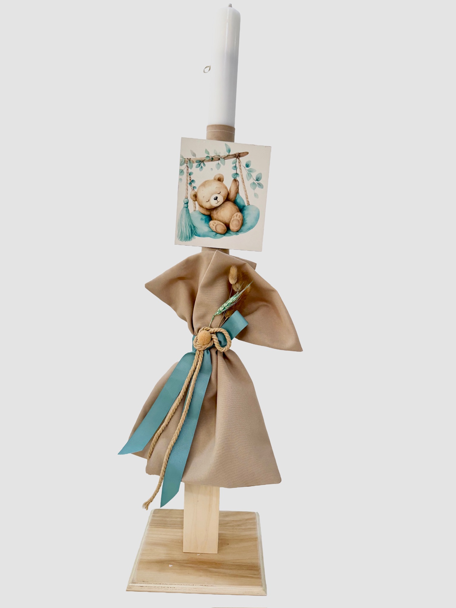 Χειροποίητη λαμπάδα και μπρανς για αγόρι με θεμα αρκουδάκι.