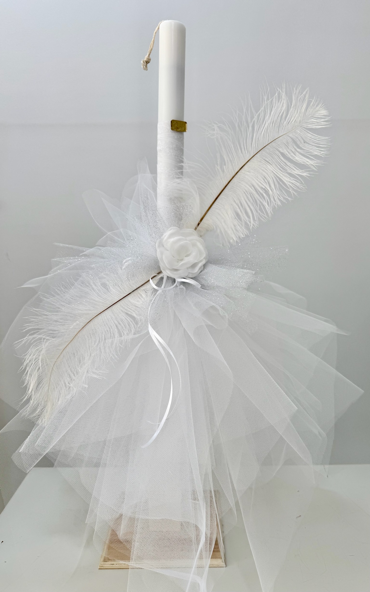 Χειροποίητη λαμπάδα και μπρανς για κορίτσι με θεμα φτερό.
