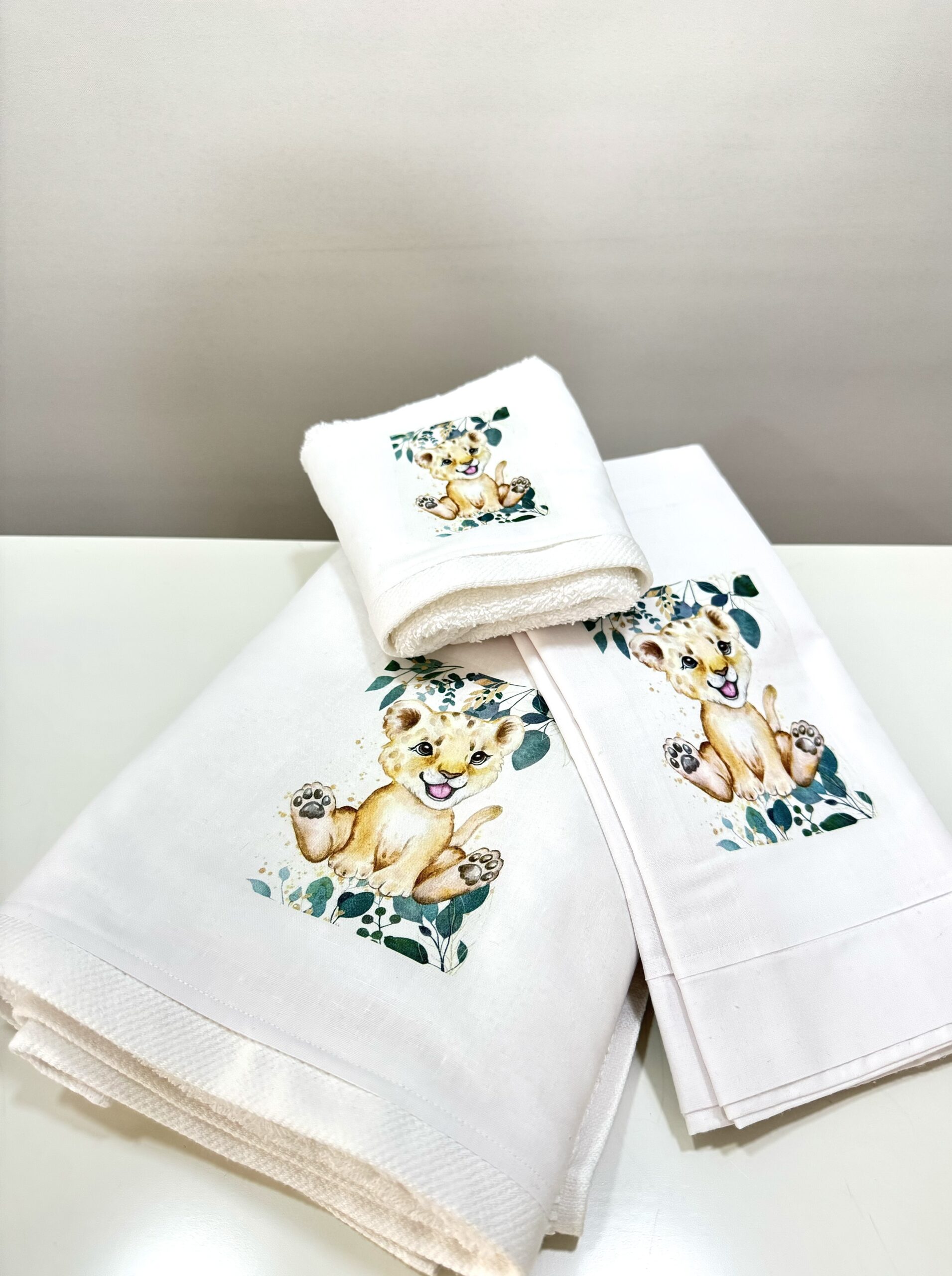 Χειροποίητο σετ λαδόπανα για αγόρι, με γκρι φάσα και διακοσμητικό γκρι φιόγκο.