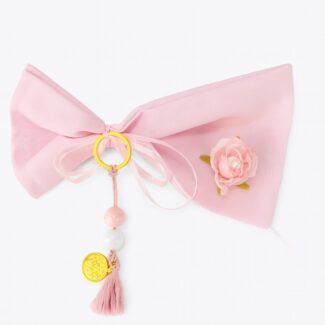 Χειροποίητα μαρτυρικά με λευκό σχοινί, ασημί σταυρό, ροζ μπίλια και φιόγκο από ροζ δαντέλα, 50 τεμάχια.
