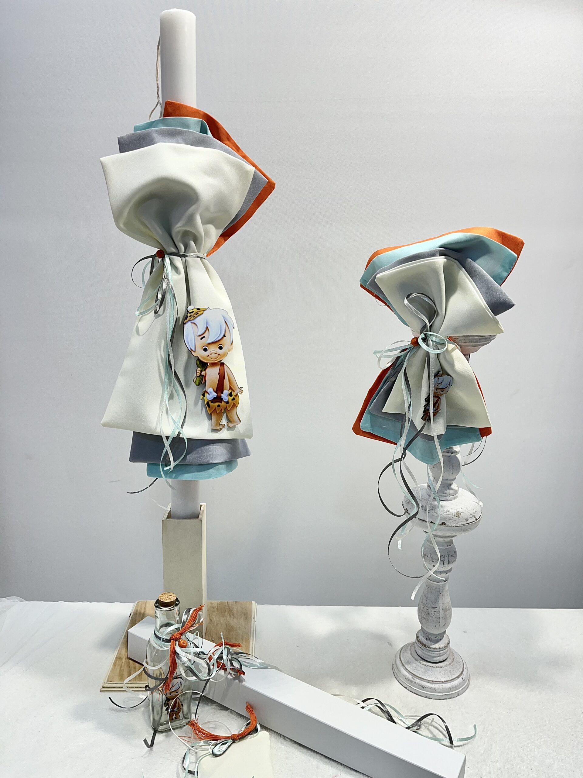 Χειροποίητο σετ λαμπάδας για αγόρι με θέμα Φλίμγκστοουν. Το σετ περιλαμβάνει τη λαμπάδα, το μπρανς και το λαδοσέτ.