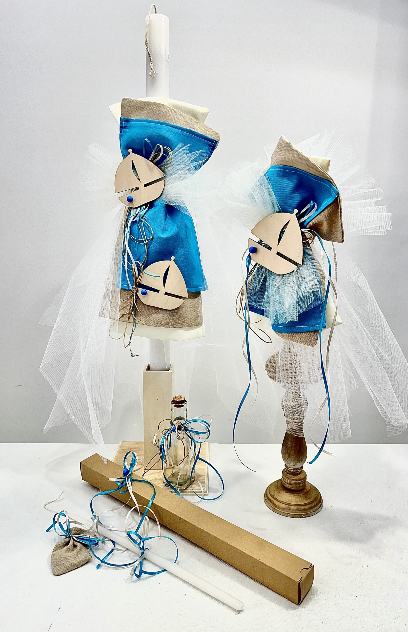 Χειροποίητο σετ λαμπάδας για αγόρι με θέμα Ιστιοπλοϊκό. Το σετ περιλαμβάνει τη λαμπάδα, το μπρανς και το λαδοσέτ.