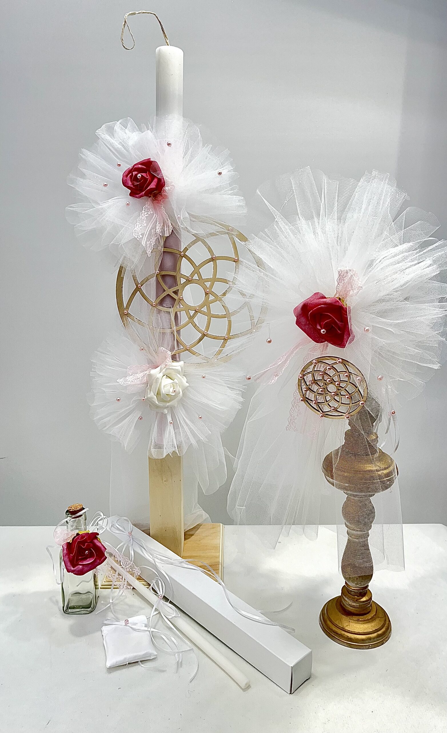 Χειροποίητο σετ λαμπάδας για κορίτσι με θέμα ονειροπαγίδα. Το σετ περιλαμβάνει τη λαμπάδα, το μπρανς και το λαδοσέτ.