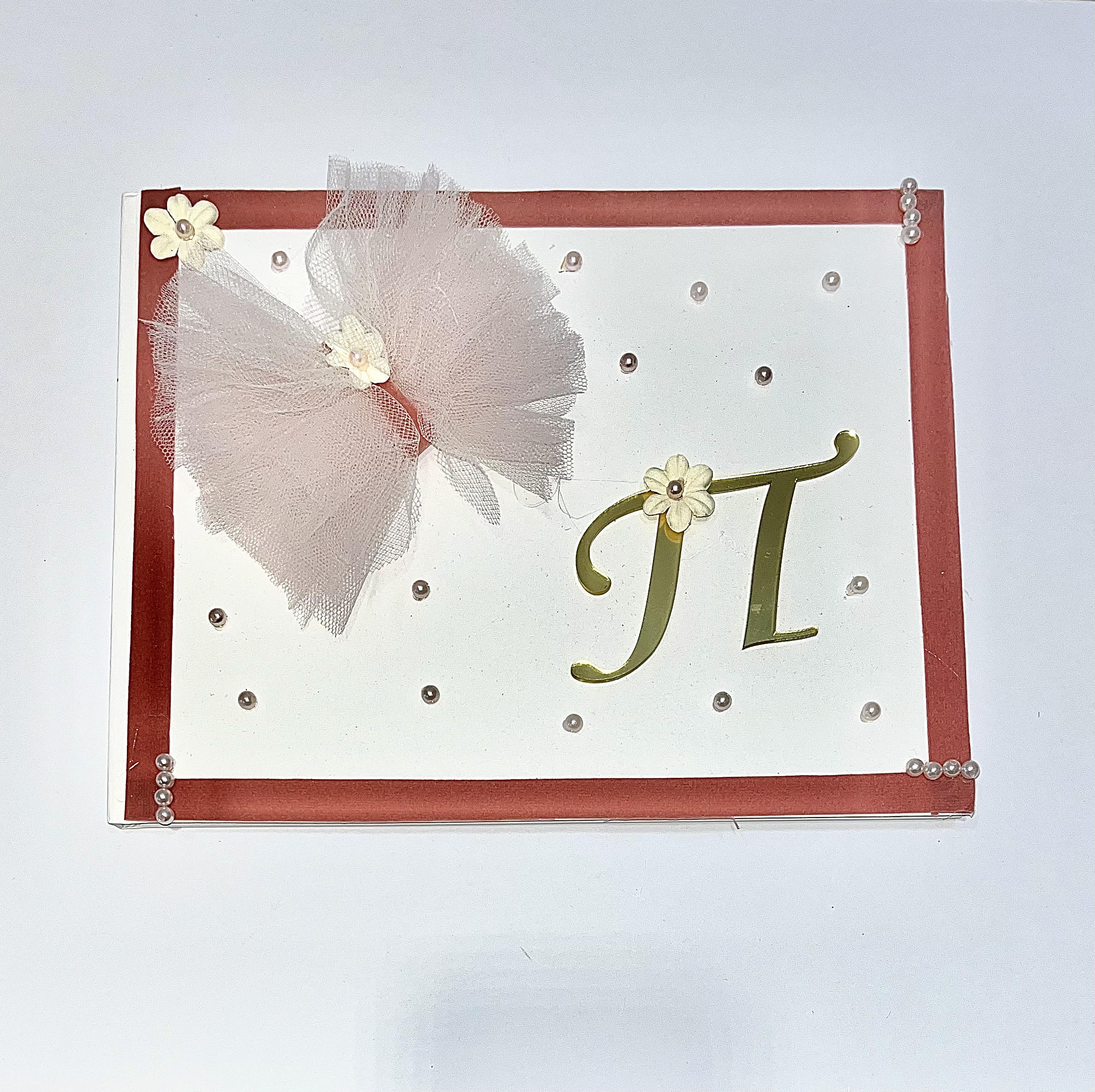 Χειροποίητο βιβλίο ευχών για κορίτσι με μονόγραμμα της επιλογή σας, με πον πον, πέρλες και διακοσμητικό λουλούδι.